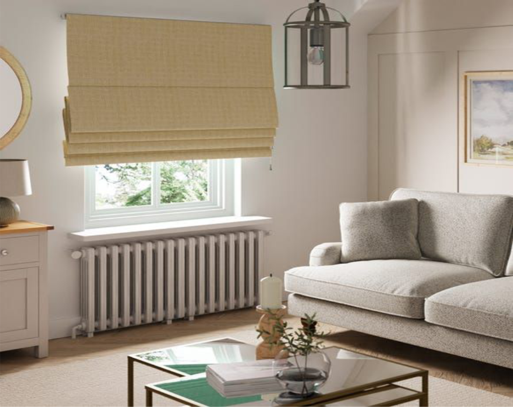 Roman blinds are blinds that fold or pleat when raised. Each section is reinforced with a light weight batten to help maintain their structure.